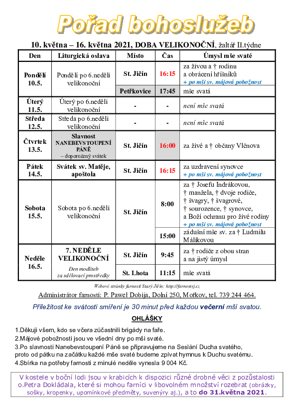 Příspěvek byl publikován 9 května, 2021 | Rubrika: Přehled bohoslužeb | Autor: admin.